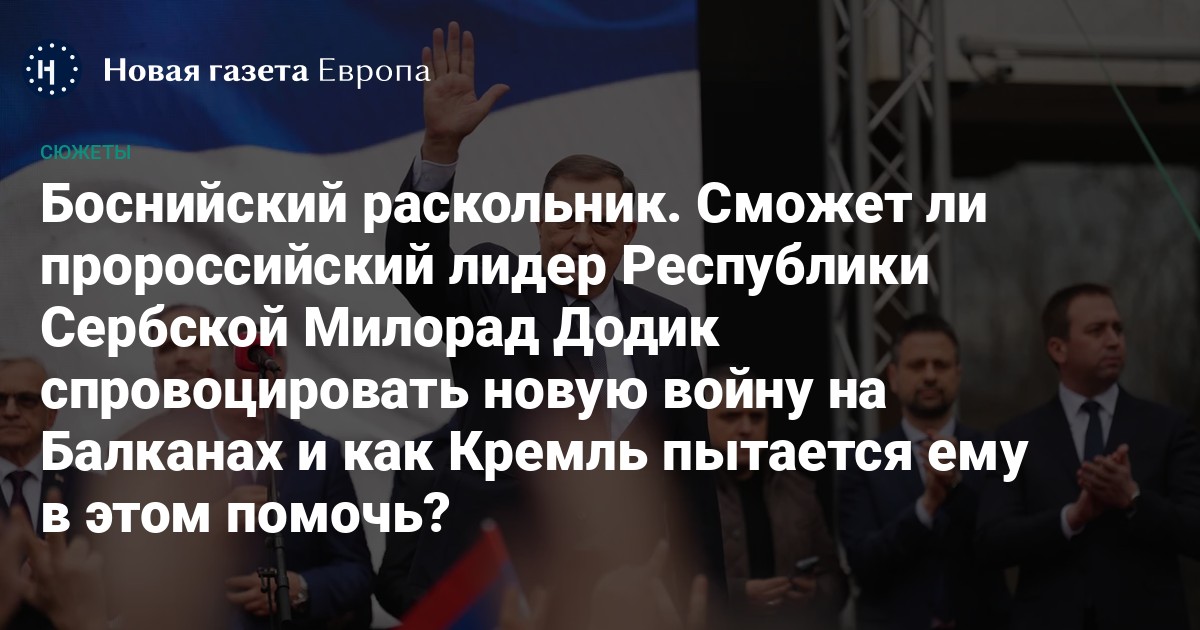 Сможет ли пророссийский лидер Республики Сербской Милорад Додик спровоцировать новую войну на Балканах и как Кремль пытается ему в этом помочь