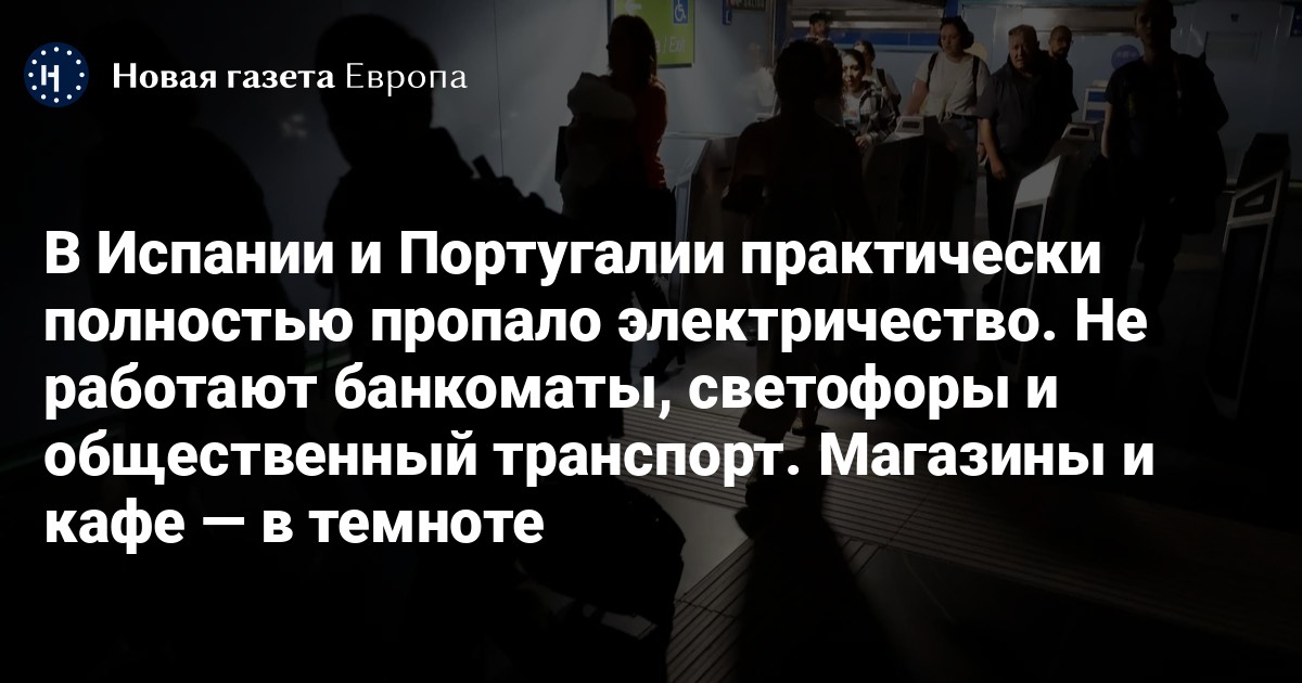 Днем 28 апреля на всем Пиренейском полуострове, а также в части Франции практически полностью перестало работать электричество. Энергия пропала не только в жилых домах, но и на улицах: начались проблемы в работе общественного транспорта, перестали работать банкоматы, а больницы перешли на запасные генераторы. «Новая-Европа» рассказывает, что об этом известно.