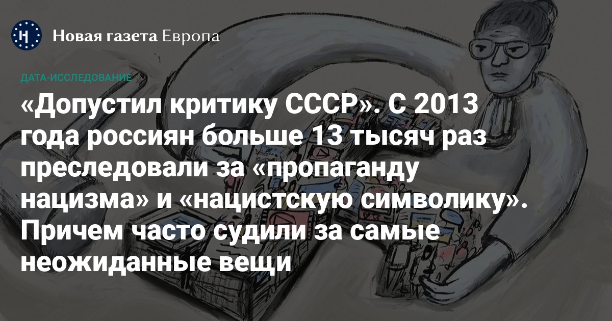 С 2013 года россиян больше 13 тысяч раз преследовали за «пропаганду нацизма» и «нацистскую символику». Причем часто судили за самые неожиданные вещи