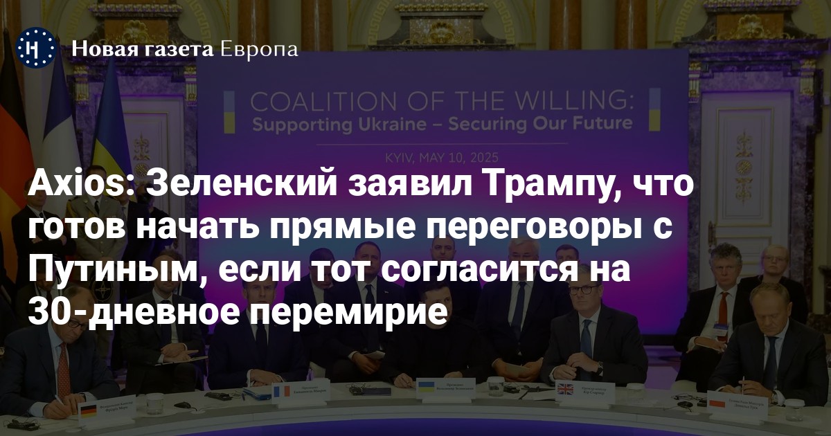 Axios: Зеленский заявил Трампу, что готов начать прямые переговоры с Путиным, если тот согласится на 30-дневное перемирие