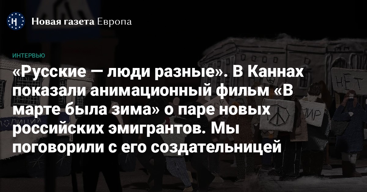 На Каннском кинофестивале впервые представили фильм, посвященный российской антивоенной эмиграции. Короткометражный анимационный фильм Winter in March («В марте была зима») был сделан в Эстонской академии искусств (EKA) армянской режиссеркой Натальей Мирзоян.
