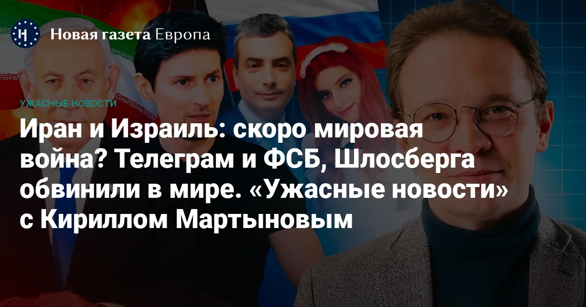 В ночь на пятницу Израиль начал военную операцию против Ирана. В результате ударов ЦАХАЛ погибли члены военной элиты страны и ученые-ядерщики. Иран ответил на это массированным обстрелом Израиля. Ранены десятки человек. Станет ли это обострение прологом к новой большой войне? Суд отправил политика Льва Шлосберга под домашний арест по делу о «повторной дискредитации» армии. Какой сигнал публичным людям, несогласным с войной, но остающимся в России, дают власти? «Важные истории» выпустили расследование о возможной связи Telegram с ФСБ, а в России тем временем призывают замедлить мессенджер. Стоит ли ждать, что Telegram постигнет участь YouTube? Каждую субботу Кирилл Мартынов, главный редактор «Новой газеты Европа», комментирует самые важные новости, которые случились в России и мире за прошедшую неделю.
