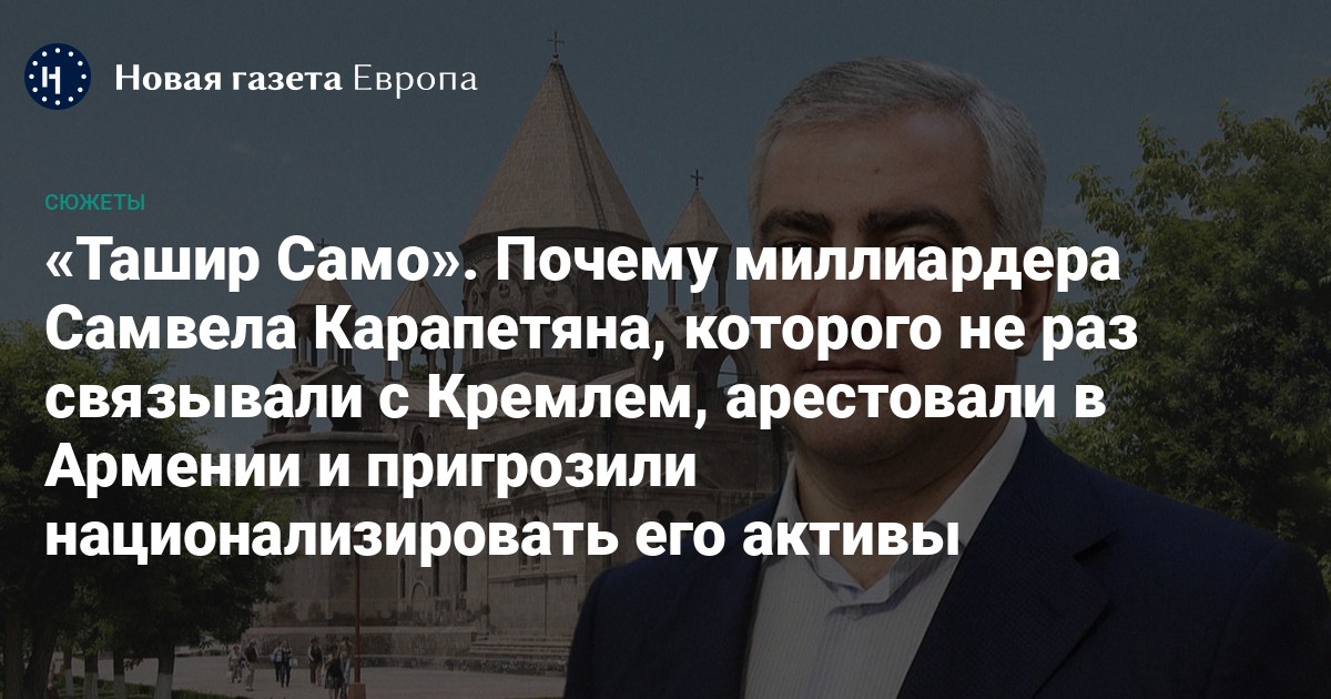 В Ереване суд на два месяца арестовал миллиардера, владельца группы компаний «Ташир» Самвела Карапетяна (состояние — $3,2 млрд, 44 место в списке российских миллиардеров Forbes) по делу о публичных призывах к захвату власти в стране. Поводом стала его критика Никола Пашиняна на фоне конфронтации с католикосом Гарегином II и Армянской апостольской церковью (ААЦ).
