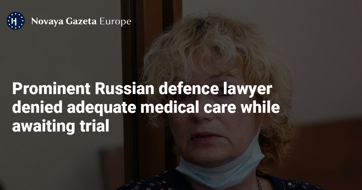 A Russian defence lawyer in pretrial detention in Kaliningrad, the Russian exclave on the Baltic Sea, is being prevented from communicating with her attorney, being denied vital medication, and is having her meals thrown away, Slovo Zashchite, a legal defence advocacy organisation, reported on Saturday.