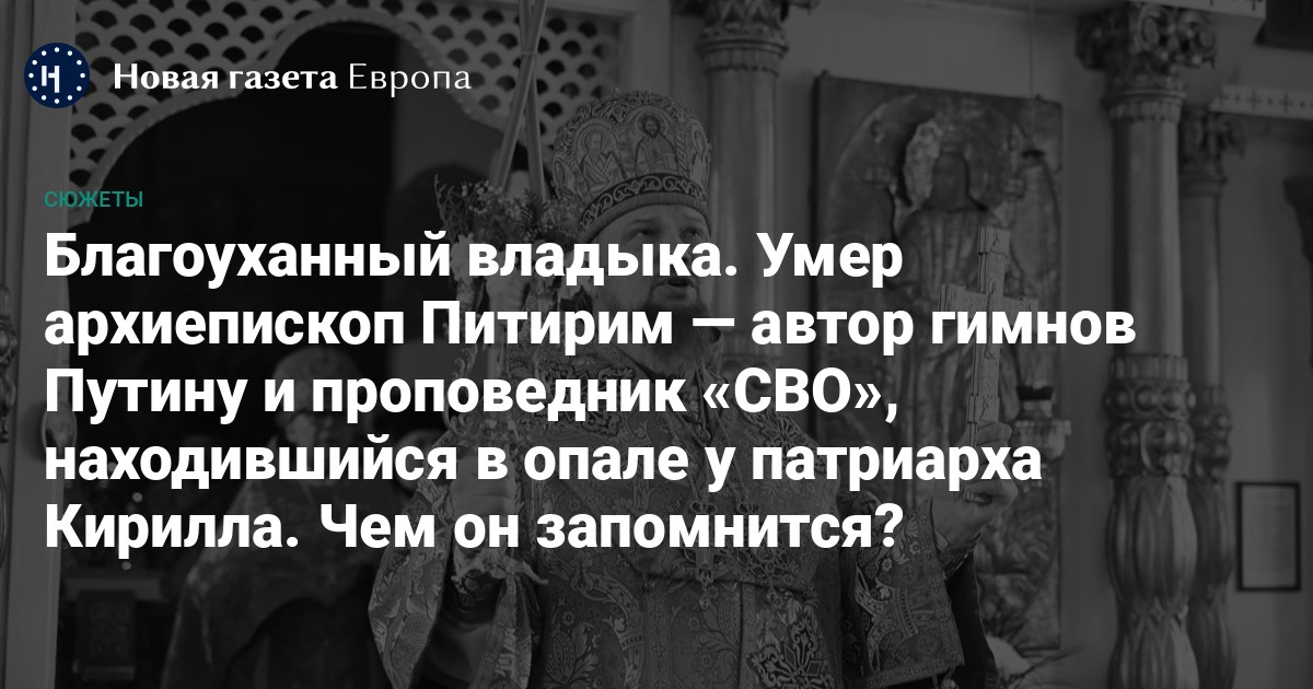 Финальным аккордом жизненного пути архиепископа Питирима стала отчаянная поддержка «СВО», которая лишь нарастала по мере того, как ВС РФ увязали в степях Украины.