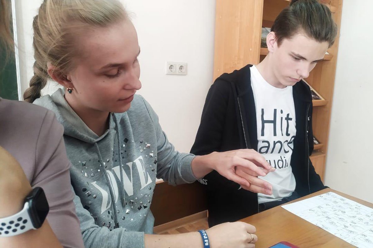 В классах интерната, где училась Алена, было не больше четырех учеников. Не все они обязательно были тотально слепоглухими: кто-то мог слышать, у кого-то частично сохранилось зрение. Поэтому учитель садился рядом с учениками и доносил информацию индивидуально каждому в зависимости от того, кто как мог ее получить. Например, он мог легко дотронуться до Алены и дактилировать ей школьную программу в руку. Еще педагог мог приложить руки учеников к своему горлу, ближе к подбородку, и объяснять что-то голосом — ученики слышали искаженную речь через слуховые аппараты и получали дополнительную информацию от определенных вибраций.