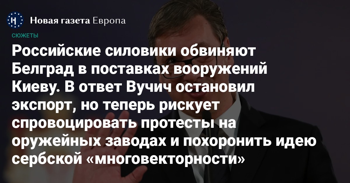 На такой шаг власти республики пошли после того, как российская Служба внешней разведки дважды за месяц обвинила сербские оборонные предприятия в поставках вооружений Киеву. Причем заявления спецслужбы были выдержаны в стилистике, более привычной для Дмитрия Медведева или Марии Захаровой: «сербских оборонщиков и их покровителей» обвинили в «выстреле России в спину», желании «нажиться на крови братских славянских народов» и организации «конвейера смерти», а официальный Белград — в «трусливой многовекторности».