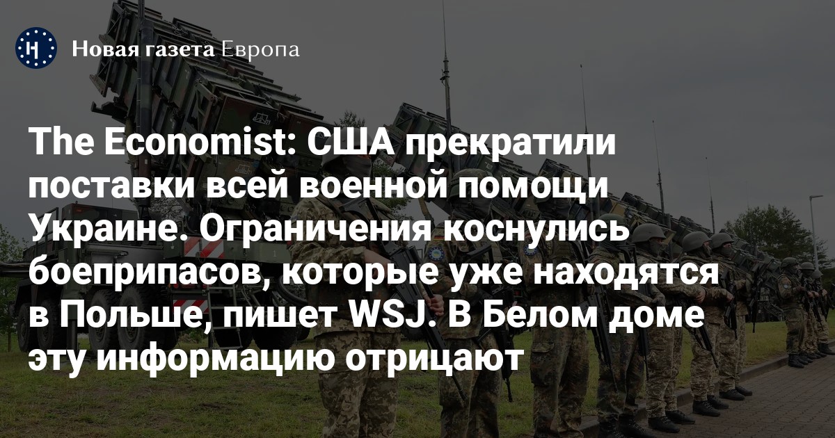 The Economist: США прекратили поставки всей военной помощи Украине. Ограничения коснулись боеприпасов, которые уже находятся в Польше, пишет WSJ