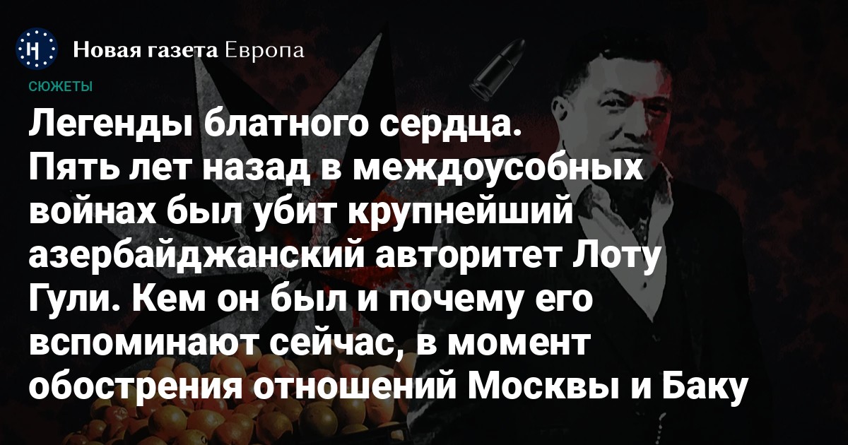 Пять лет назад в междоусобных войнах был убит крупнейший азербайджанский авторитет Лоту Гули. Кем он был и почему его вспоминают сейчас, в момент обострения отношений Москвы и Баку