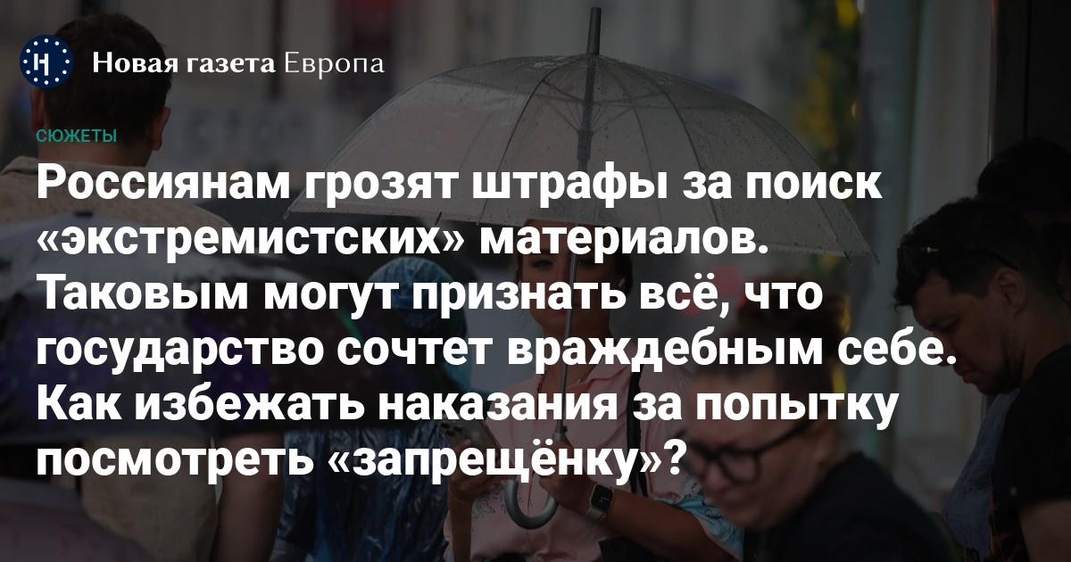 — Полиция и суд будут определять, было ли ищущему и читающему заведомо ясно, что искомое подходит под один из этих критериев. Это очень непросто доказать. Но поскольку это административка мелкая, то вряд ли будут как-то углубленно доказывать, — считает другой собеседник «Новой-Европа», правозащитник, пожелавший остаться анонимным.