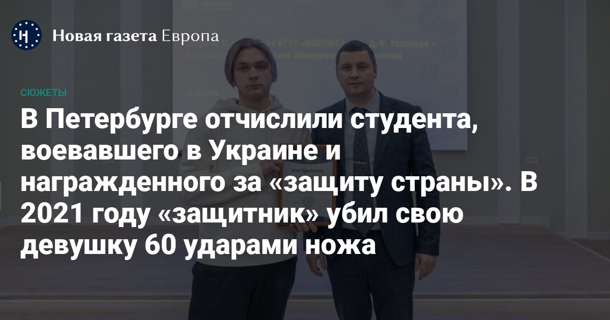 В Петербурге отчислили студента, воевавшего в Украине и награжденного за «защиту страны»