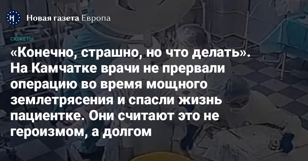 В соцсетях распространилась запись с камеры видеонаблюдения из операционной. Первым ее опубликовал министр здравоохранения Камчатского края Олег Мельников. На видео медсестра обхватывает стол, а хирурги удерживают пациента и оборудование, несмотря на интенсивную тряску. Никто из врачей от рабочего места не отходит.