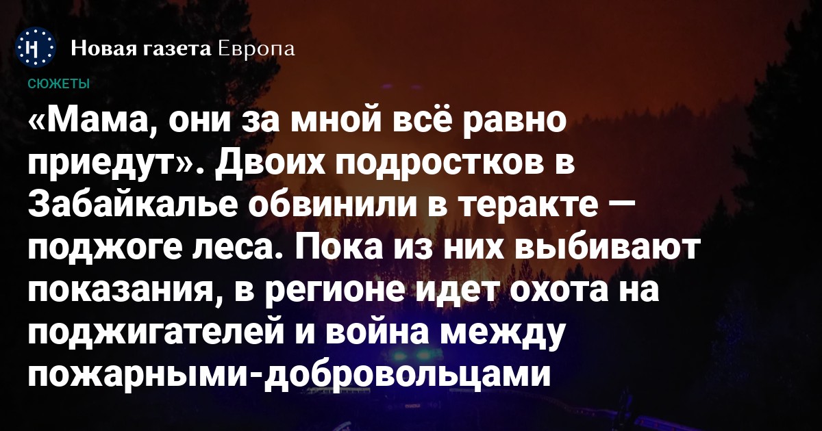 В Забайкальском крае двух 16-летних подростков подозревают в организации теракта, возбуждено уголовное дело. Якобы по заказу куратора из Украины они подожгли лес под Читой. Мать одного из них заявила, что ее сына пытали электрошокером, чтобы выбить признание.