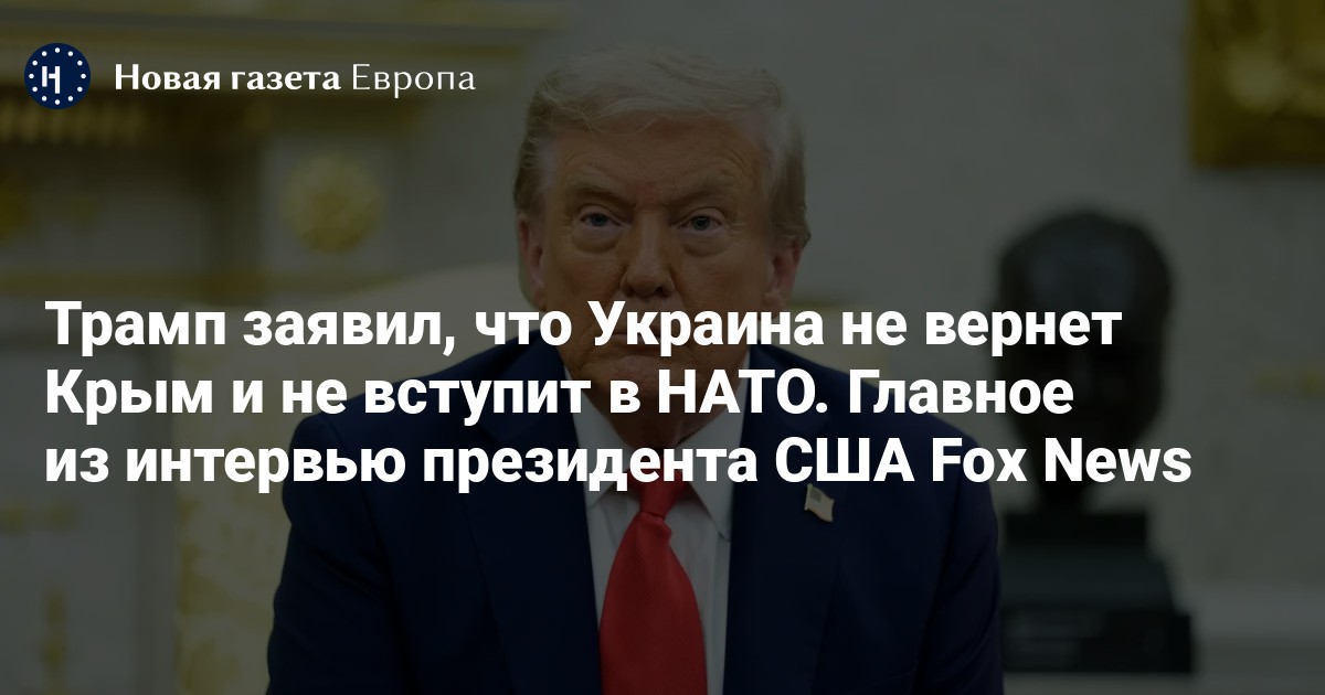 Президент США Дональд Трамп заявил в интервью Fox News, что Украина не сможет вступить в НАТО и вернуть Крым.