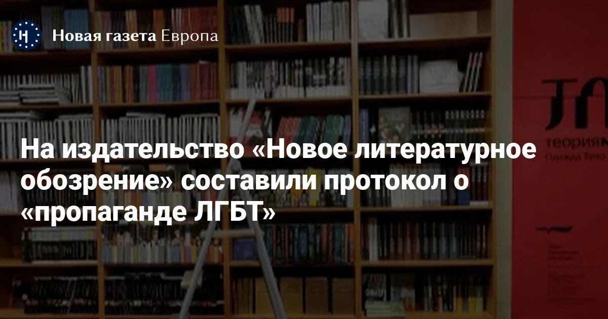 В Пресненский районный суд Москвы поступил протокол о «пропаганде ЛГБТ» в отношении издательства «Новое литературное обозрение» (НЛО), обратила внимание «Медиазона».