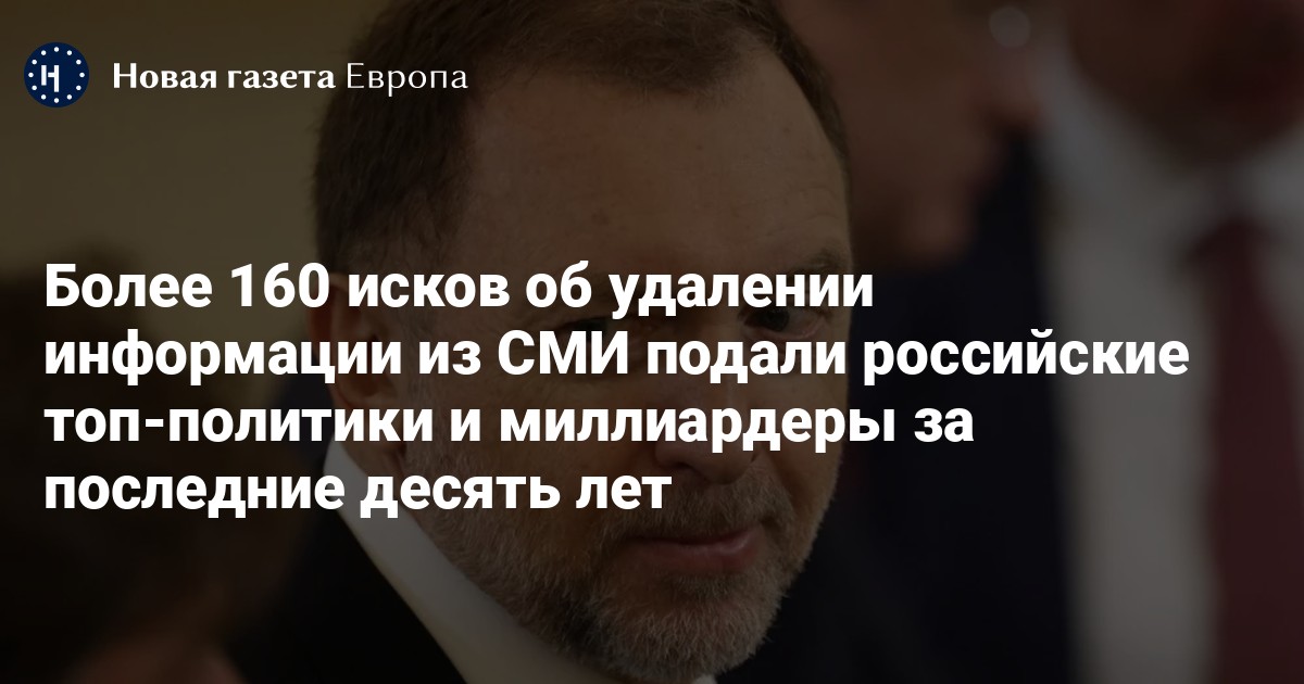 С 2015 года российские федеральные политики и миллиардеры подали более 160 исков против СМИ с требованием удалить ту или иную информацию о них. Об этом говорится в исследовании «Новой газеты Европа».