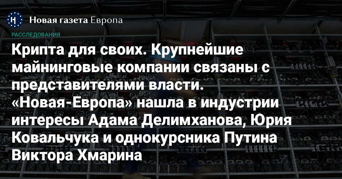 Майнинг — новая перспективная отрасль, которая может принести самым удачливым инвесторам миллионы долларов. Россия — один из мировых лидеров по майнингу криптовалют. До сих пор рынок развивался в «серой» зоне, но в 2024 году депутаты приняли закон, который должен был упорядочить правила игры на этом рынке, а также дать предпринимателям доступ к страхованию, кредитам и другим финансовым услугам. Закон также должен был решить конфликт интересов между майнерами и энергетиками. «Новая газета Европа» изучила самых крупных производителей крипты и рассказывает, как энергетики продолжают майнить, несмотря на запреты, а построить крупный бизнес без связей с людьми, приближенными к власти, практически невозможно.