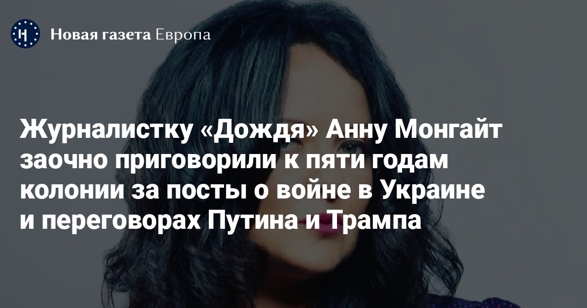 Журналистку «Дождя» Анну Монгайт заочно приговорили к пяти годам колонии за посты о войне в Украине и переговорах Путина и Трампа