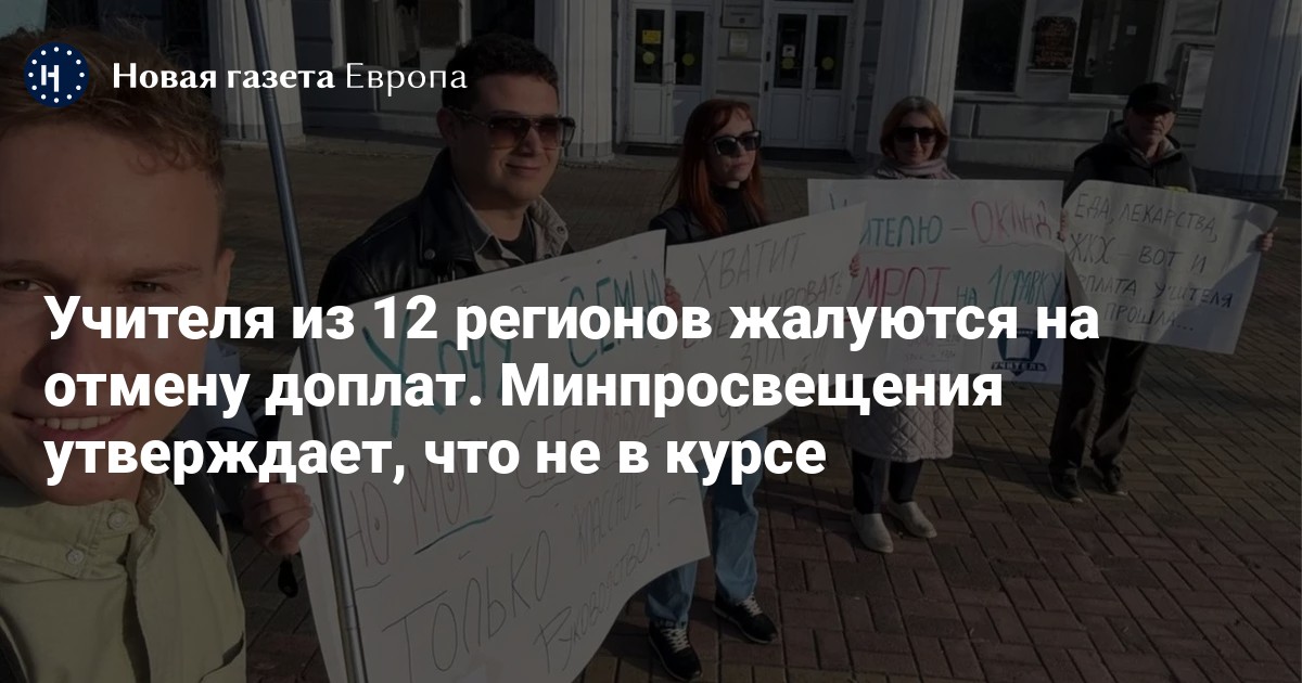 По данным профсоюза, с начала октября им поступают обращения из Карелии, Башкортостана, Удмуртии, Рязанской, Оренбургской, Иркутской, Тульской и Орловской областей, а также Краснодарского и Хабаровского краев. Педагоги пишут об отмене сельских выплат, надбавок за категорию, стаж, классное руководство и проверку тетрадей.