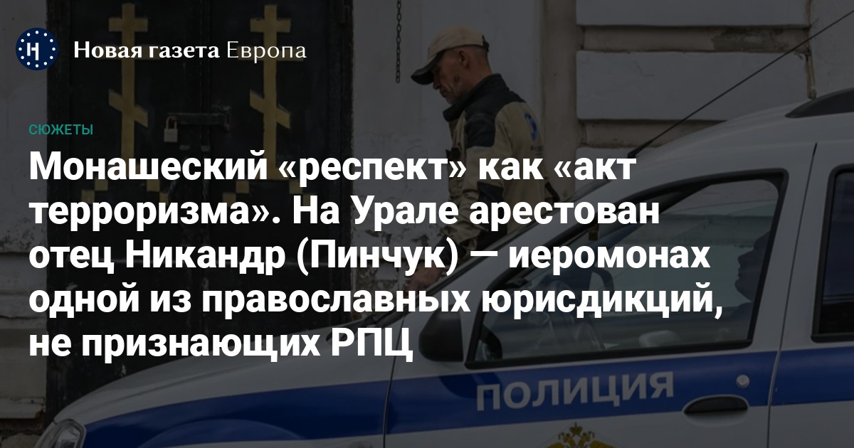 Настоятеля домашнего прихода одной из «альтернативных» православных церквей, еще действующих в России, иеромонаха Никандра (в миру — Евгения Пинчука) арестовал 17 октября Верхотурский городской суд Свердловской области — как водится, поначалу на два месяца. Но есть достаточно оснований предполагать, что о. Никандр не скоро выйдет на свободу: его подозревают по особо чувствительной для режима статье — ч. 2 ст. 205.2 УК РФ («Публичные призывы к осуществлению террористической деятельности, публичное оправдание терроризма или пропаганда терроризма»). Максимальное наказание по этой части статьи — семь лет лишения свободы.
