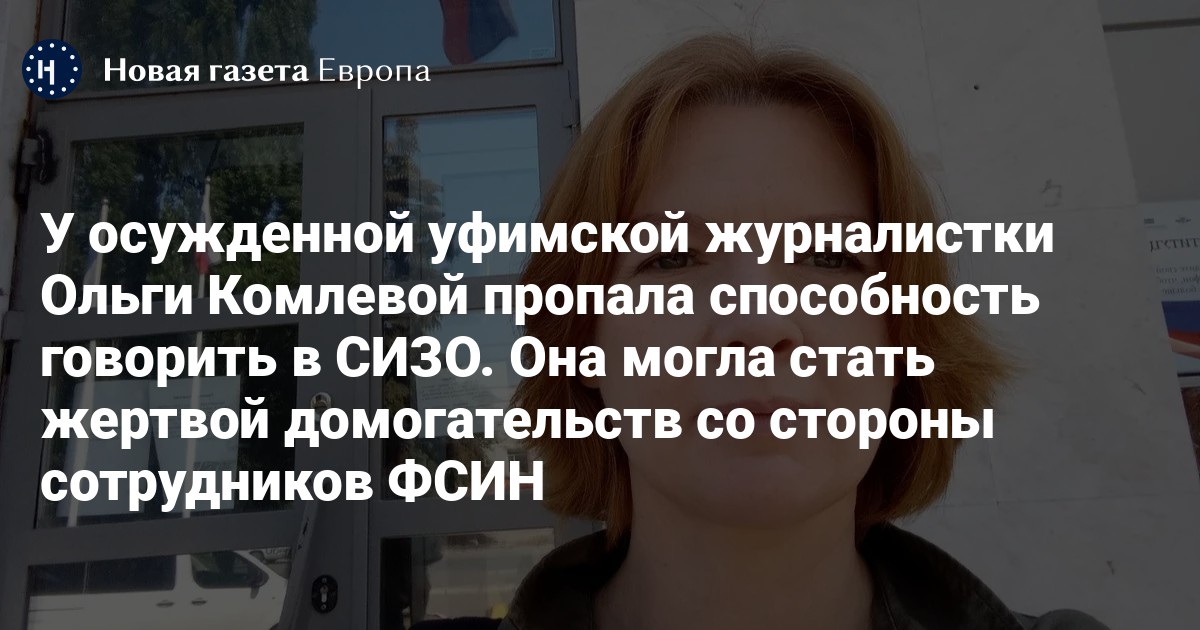 У уфимской журналистки и активистки Ольги Комлевой, приговоренной к 12 годам колонии по делу о военных «фейках» (п. «д» ч. 2 ст. 207.3 УК) и участии в «экстремистском» сообществе (ч. 2 ст. 282.1 УК), пропала устная речь в заключении. Об этом она рассказала в письме своему мужу.