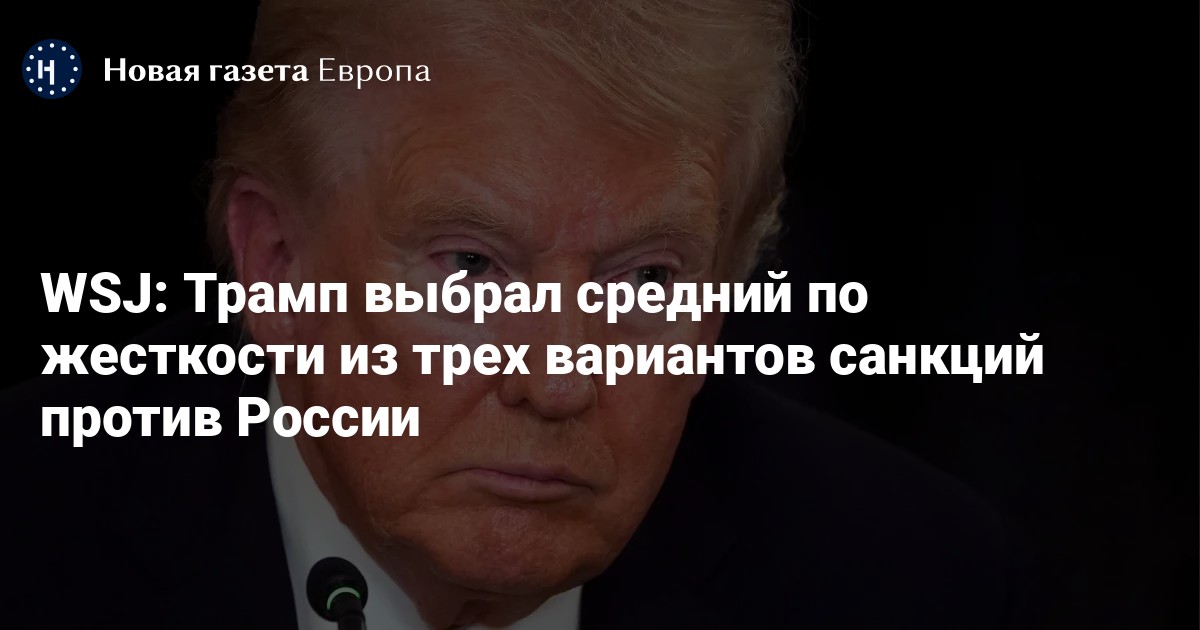 Президент США Дональд Трамп выбрал средний по жесткости из трех предложенных ему пакетов санкций в отношении России. Об этом сообщил The Wall Street Journal со ссылкой на источники.