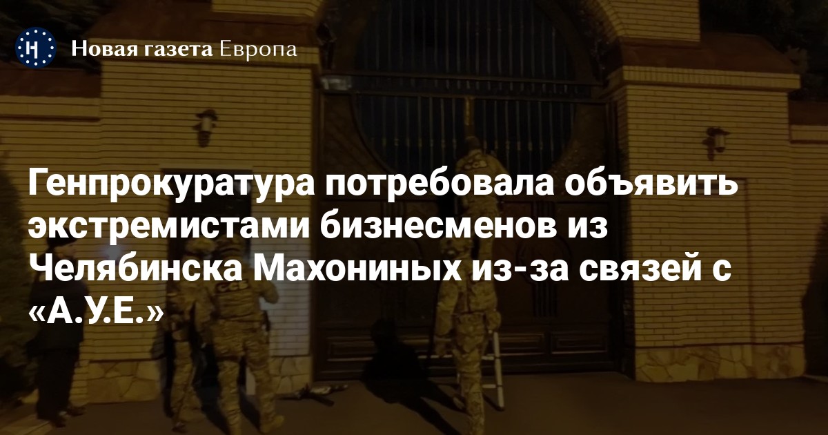 Генпрокуратура предложила объявить «экстремистским объединением» братьев-бизнесменов из Челябинска Александра и Андрея Махониных, их близких и соратников. Также Генпрокуратура потребовала изъять их имущество в доход государства. Об этом со ссылкой на иск, поданный в Советский районный суд Челябинска, сообщил «Коммерсант».