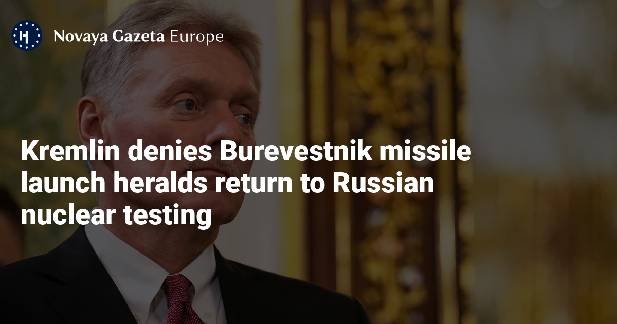 The Kremlin on Thursday denied that Russia’s successful test launch of its nuclear-capable, nuclear-powered 9M730 Burevestnik intercontinental missile last week, or that of its underwater nuclear-capable torpedo Poseidon on Monday, represented a unilateral return to nuclear testing in breach of a moratorium introduced in the 1990s.