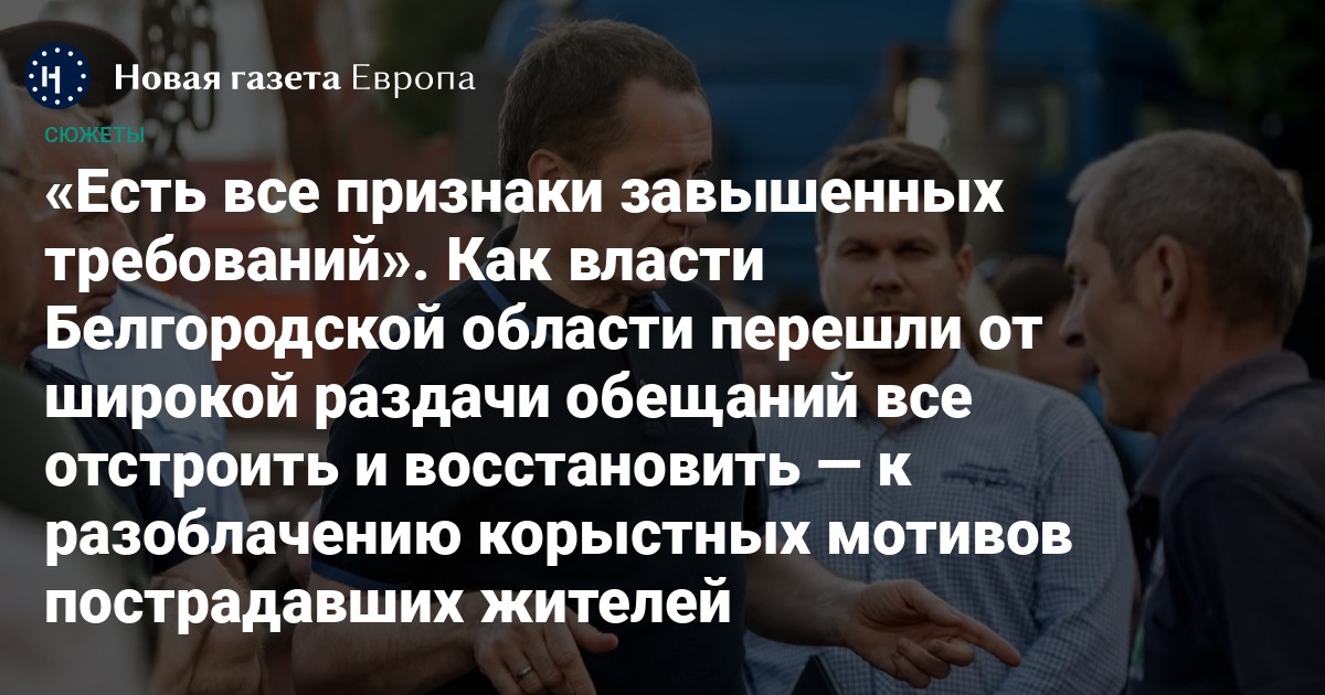 Пытаясь угнаться всё нарастающим объемом разрушений, власти Белгородской области начинают искать возможности снизить эту нагрузку. То есть ищут, кому бы можно отказать.