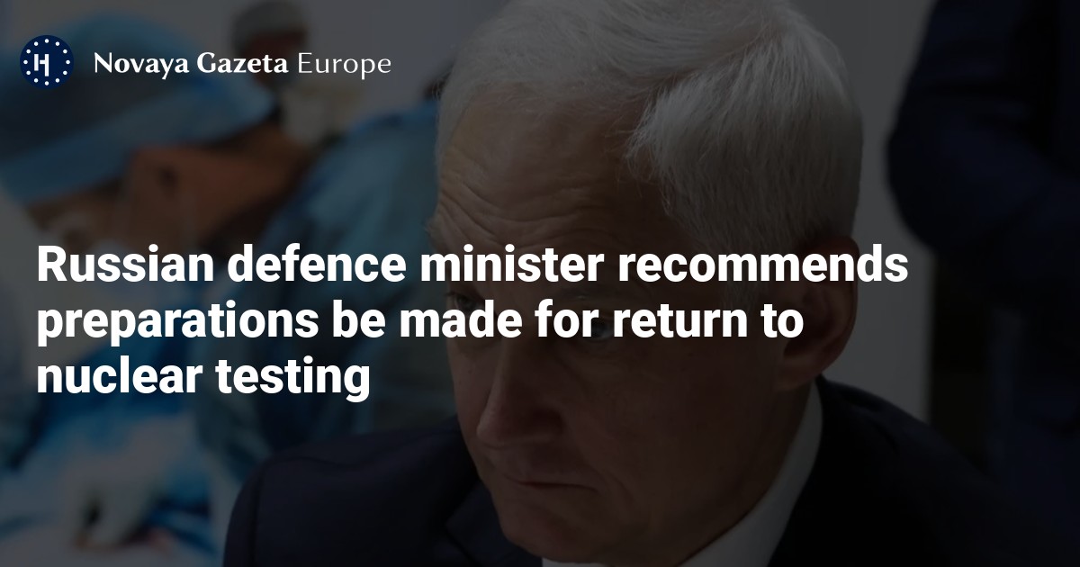 Russian Defence Minister Andrey Belousov has recommended that preparations for the recommencement of nuclear tests on the Novaya Zemlya archipelago in the Arctic Ocean begin immediately, state-owned news agency RIA Novosti reported on Wednesday.