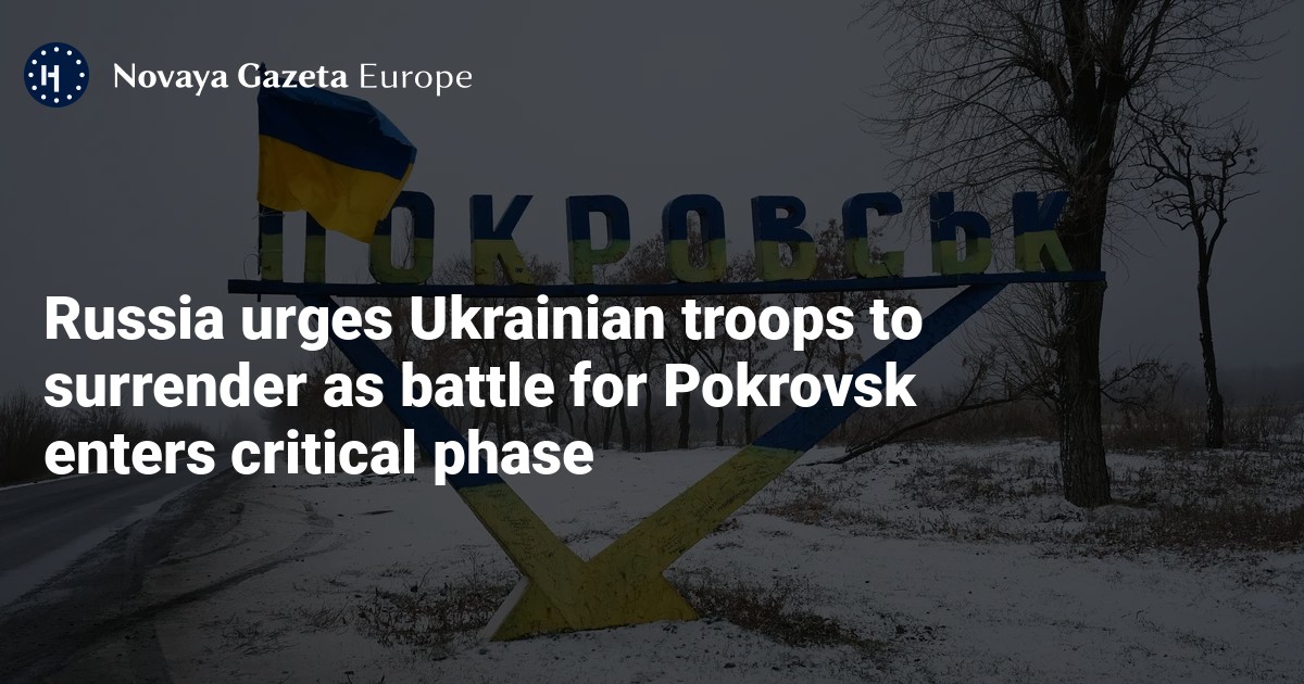 Russia’s Defence Ministry called on Ukrainian troops in the embattled frontline city of Pokrovsk to surrender on Wednesday as Russian forces tightened their encirclement of the key strategic hub in Ukraine’s eastern Donetsk region.