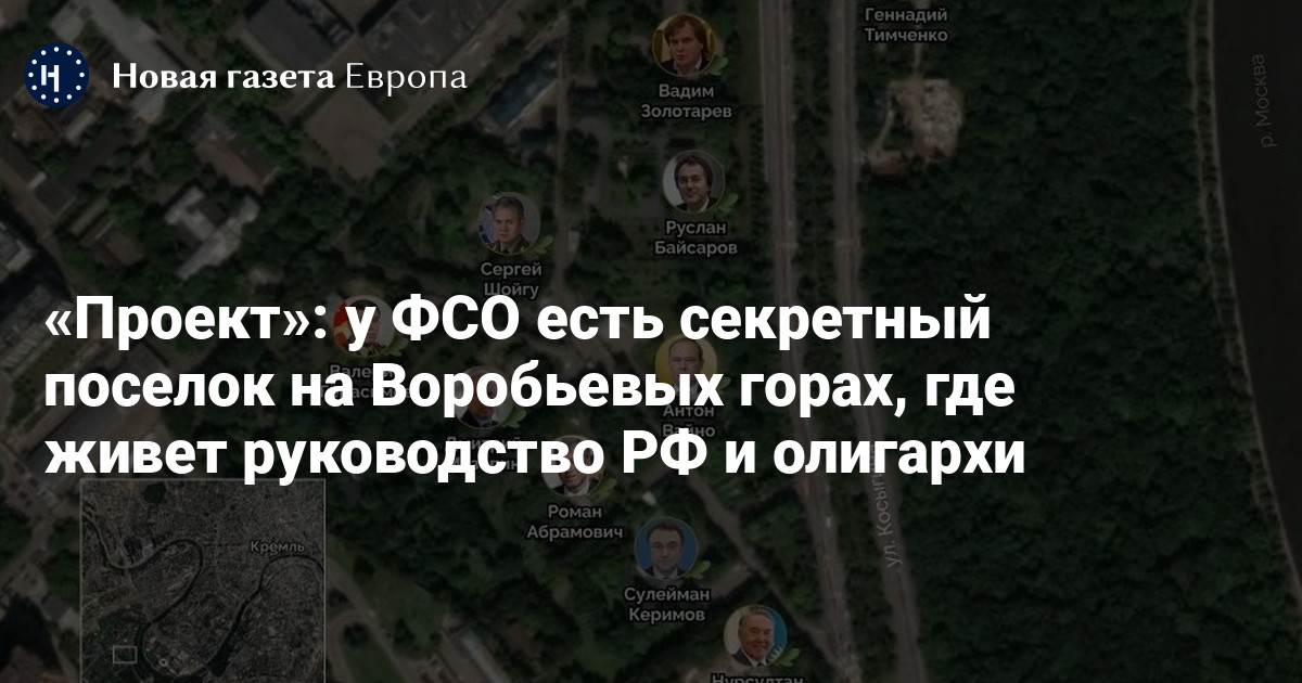 В центре Москвы на Воробьевых горах есть секретный поселок ФСО (Федеральной службы охраны), где высокопоставленные российские чиновники, олигархи и бывший президент Казахстана Нурсултан Назарбаев получили дачи. Об этом сообщается в расследовании «Проекта».