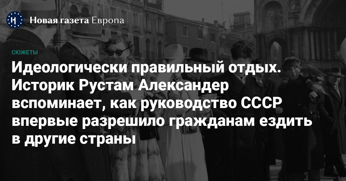 Вторую неделю одна из главных новостей — запрет на выдачу россиянам европейских мультивиз. Решение Еврокомиссии еще больше ограничило возможности людей выезжать в Европу: некоторые государства и так не выдают им визы, за исключением гуманитарных случаев и особых обстоятельств, а добираться в страны ЕС с учетом отмененных рейсов с начала войны стало гораздо дольше, дороже и сложнее. Жители России всё больше чувствуют себя отгороженными от своих западных соседей — как это уже когда-то было. На фоне нынешних событий историк Рустам Александер вспоминает эпоху оттепели, когда советские граждане, наоборот, впервые смогли выезжать за границу.