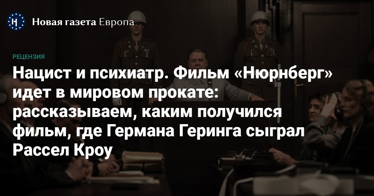 Сценарий нового «Нюрнберга» основан на книге Джека Эль-Хая «Нацист и психиатр». Главные герои, соответственно, — официальный правопреемник Гитлера, рейхсмаршал, министр авиации Герман Геринг (Рассел Кроу) и американский психиатр Дуглас Келли (Рами Малек). Первый после самоубийства Гитлера, Гиммлера и Геббельса становится нацистским лидером наиболее высокого ранга, оказавшимся под судом. Второго же вызвали в Нюрнберг, чтобы оценить, пригодны ли заключенные для судебного разбирательства.
