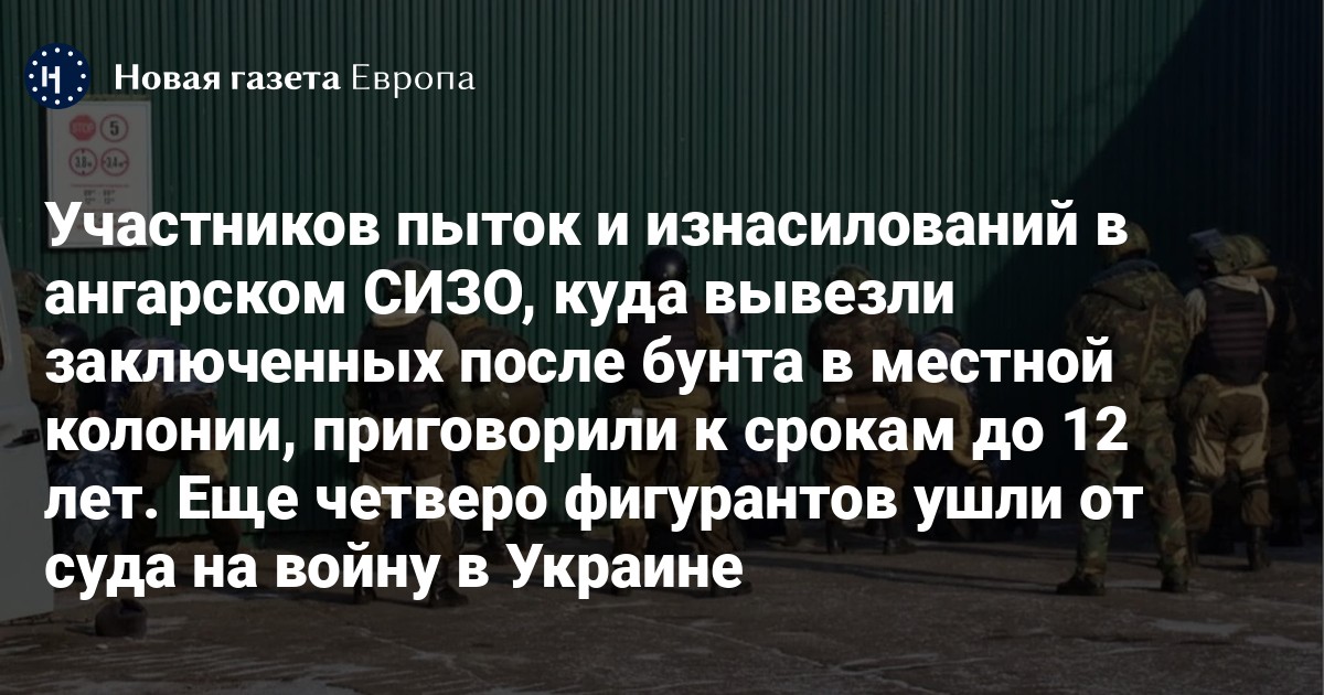 Ангарский городской суд Иркутской области приговорил к срокам от пяти до 12 лет лишения свободы участников пыток и изнасилований в местном СИЗО-6, куда привозили заключенных после бунта в ИК-15 в 2020 году. Об этом сообщил правозащитник Святослав Хроменков.