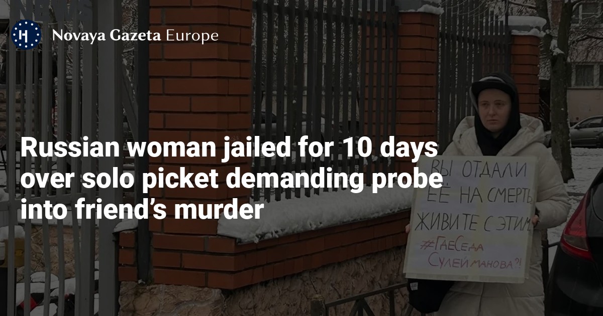 Patyaeva has been mounting solo pickets demanding an investigation into her friend’s disappearance and suspected murder since January 2024, including one in Grozny. This is the first time that she has been jailed for her protests, however.