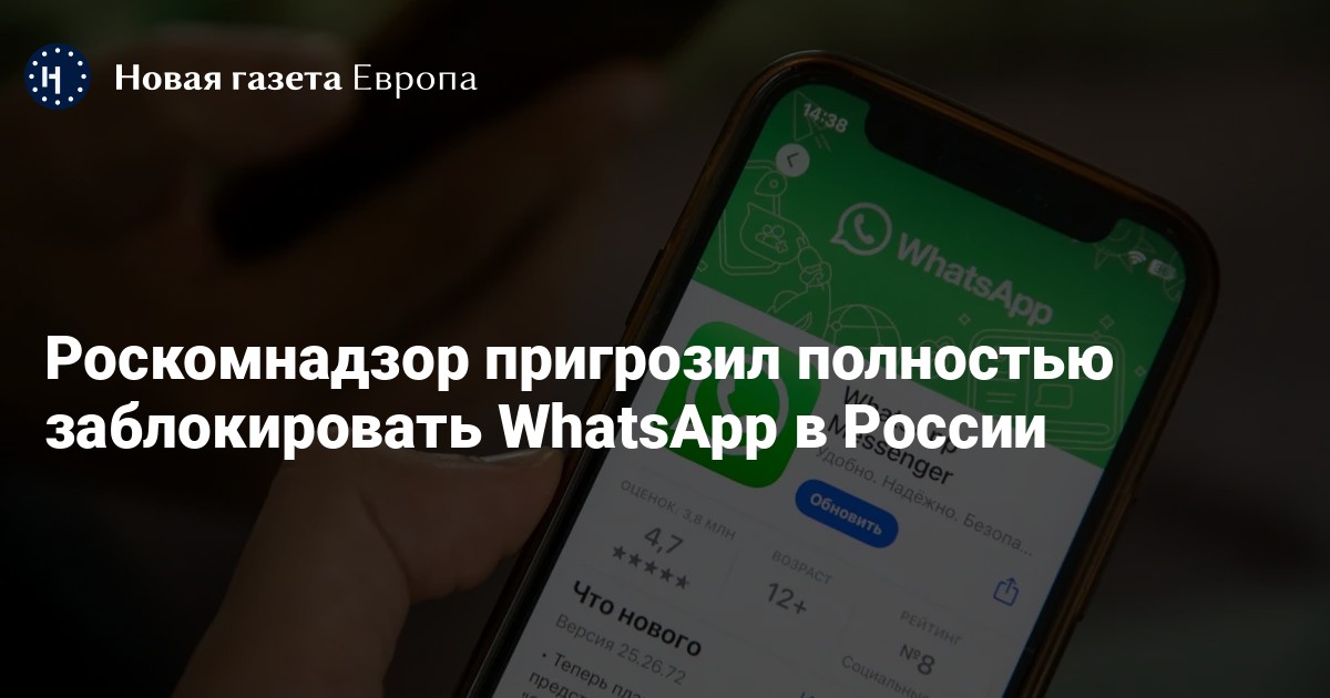 В случае, если WhatsApp продолжит нарушать требования закона, его могут полностью заблокировать в России, сказали в РКН.