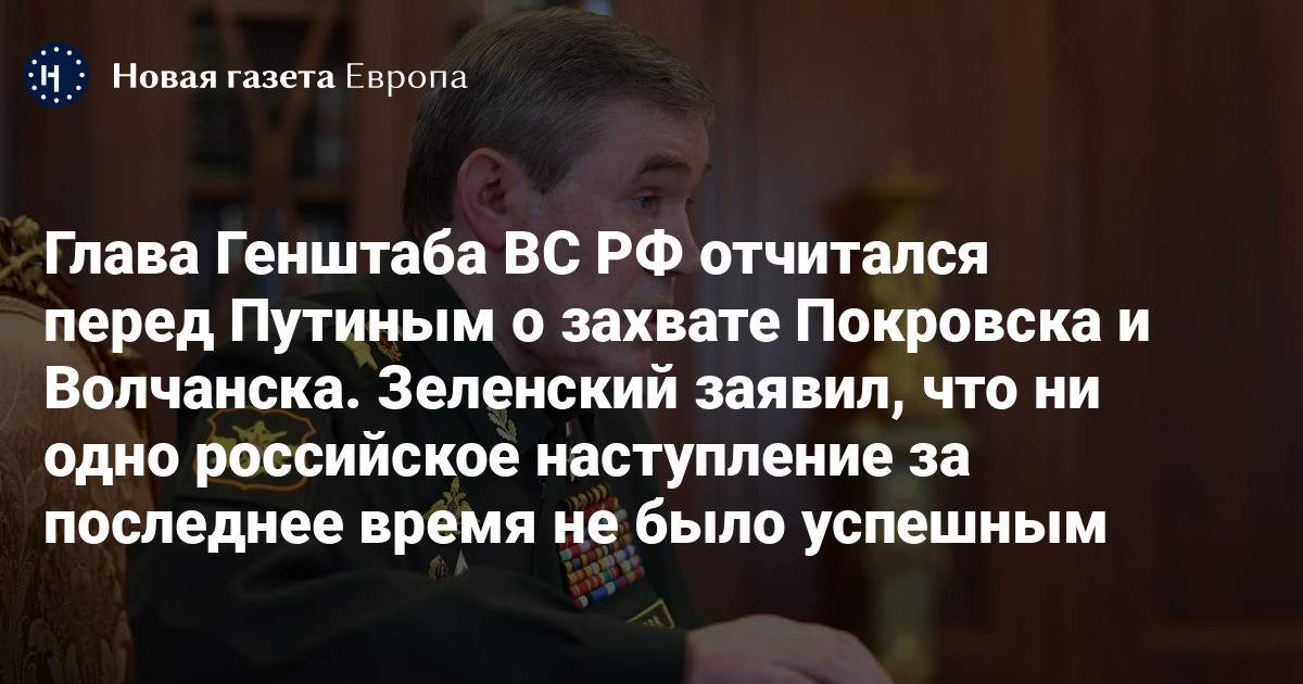 Российские войска взяли под контроль украинские города Покровск и Волчанск, заявил глава Генштаба ВС РФ Валерий Герасимов Владимиру Путину во время его визита в один из пунктов управления Объединенной группировки войск 30 ноября. Об этом говорится на сайте Кремля.