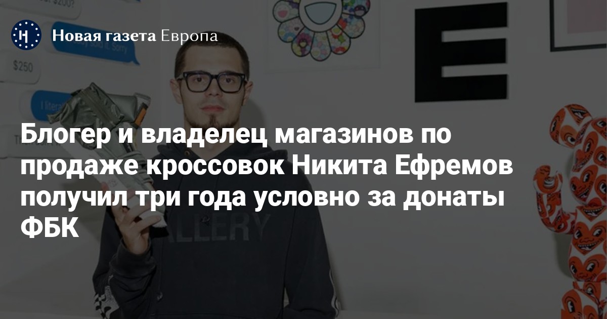 Суд в Московской области приговорил блогера и владельца магазина по продаже кроссовок Никиту Ефремова к трем годам лишения свободы условно по делу о финансировании экстремистской деятельности (ч. 1 ст. 282.3 УК). Об этом сообщила подмосковная прокуратура.